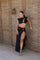O destaque fica por conta da fenda lateral profunda, que valoriza as pernas e garante sensualidade na medida certa, enquanto o detalhe em argola no cós adiciona um charme moderno e diferenciado.