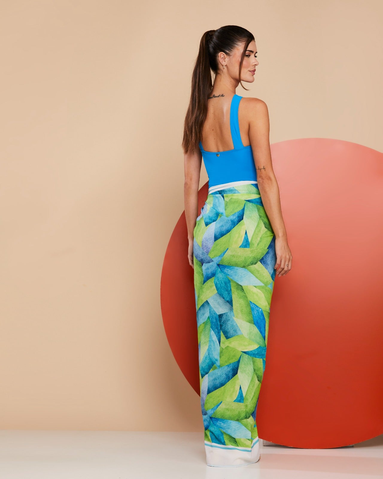Seu tecido leve e de toque suave garante caimento impecável, enquanto a amarração versátil permite diferentes formas de uso – como saia, vestido ou saída de praia. Uma peça indispensável para compor looks únicos e cheios de personalidade.