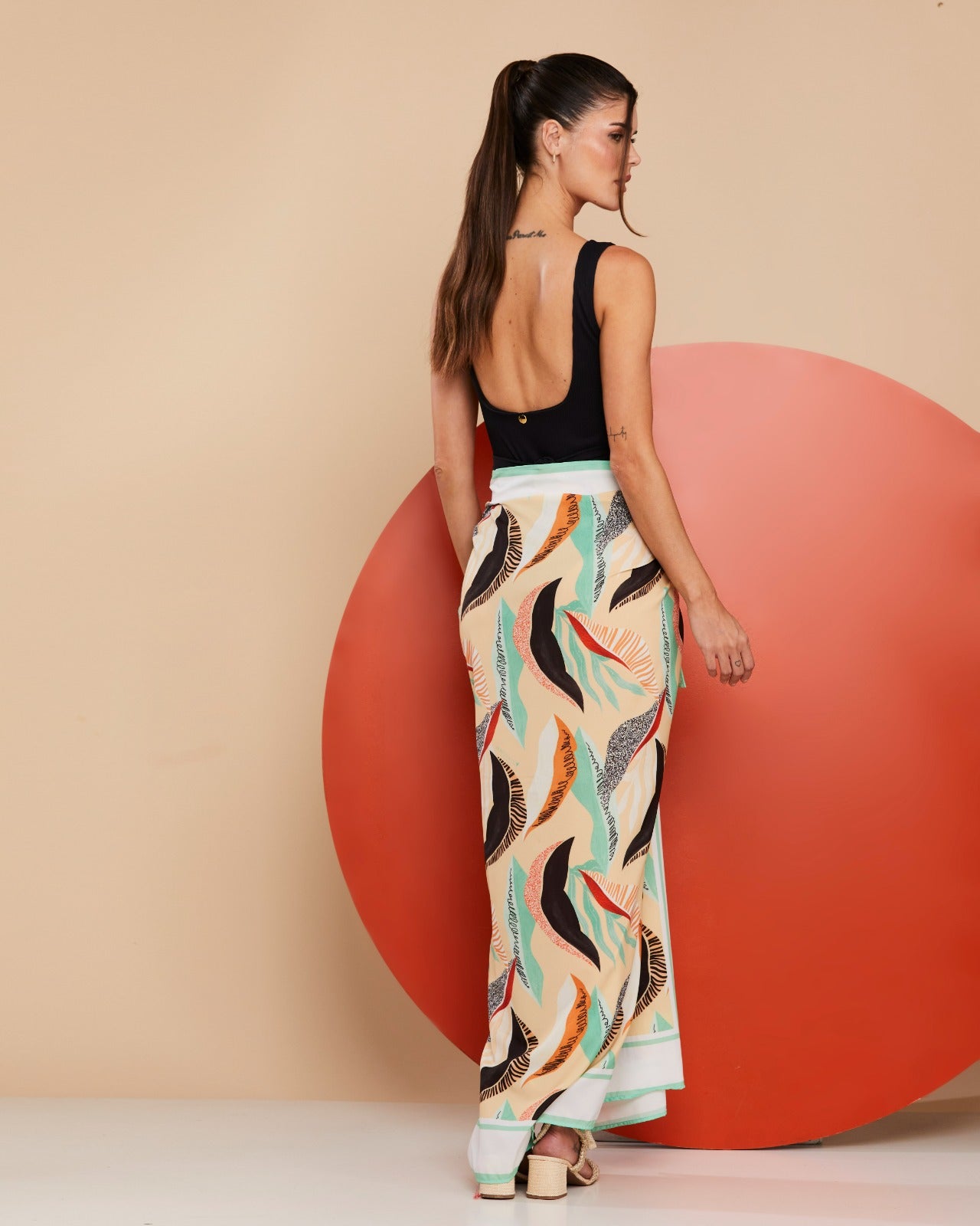 Com sua estampa exclusiva em tons tropicais e detalhes que remetem à natureza, a peça traz frescor e modernidade, além de ser super prática: pode ser usada como saia, vestido ou saída de praia, se adaptando ao seu estilo e à ocasião.